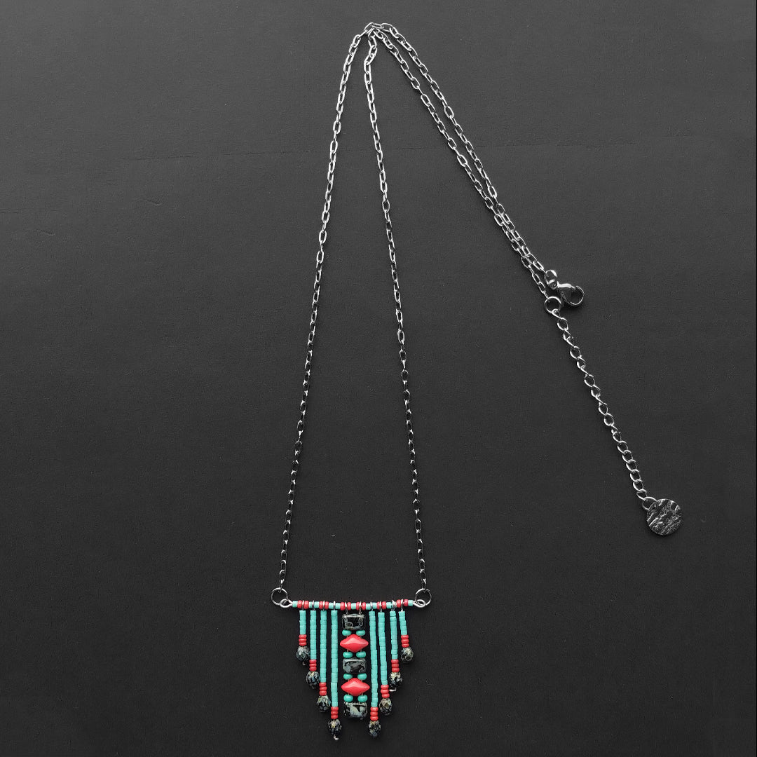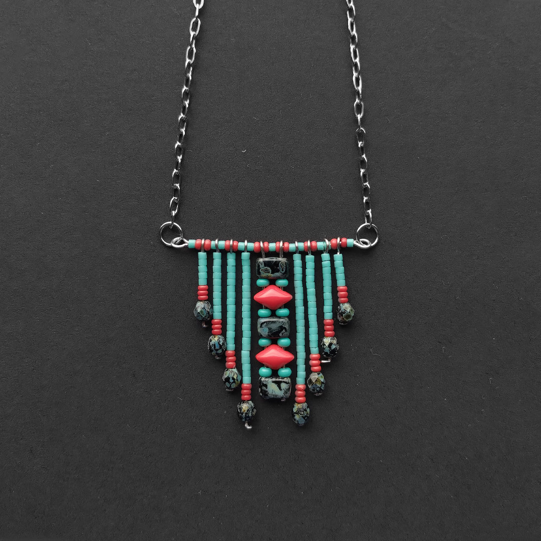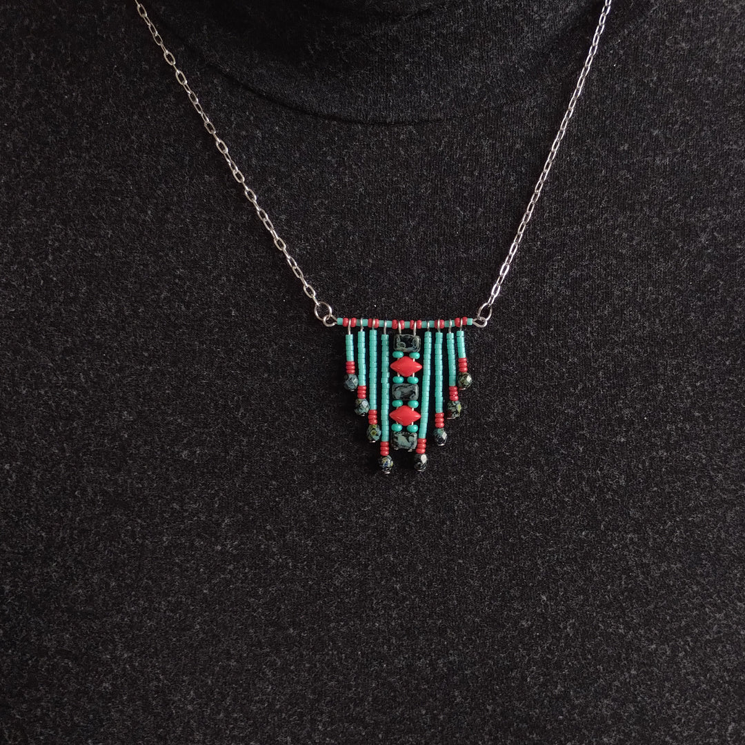 Kombinovanjem perlica različitih veličina, oblika i boja nastao je interesantan dizajn ogrlice.